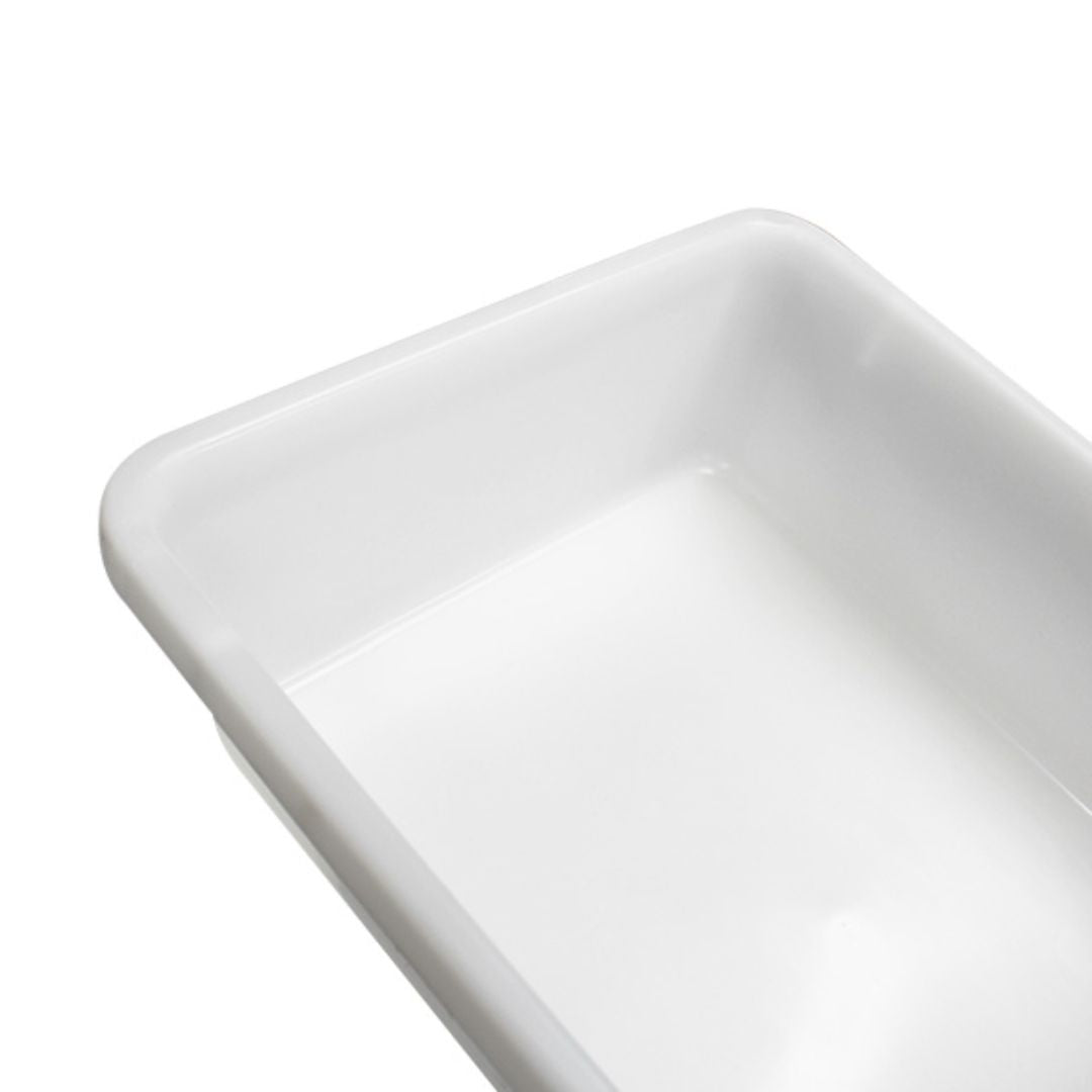 - Features: Durable white plastic, stack and nest design for space-saving storage