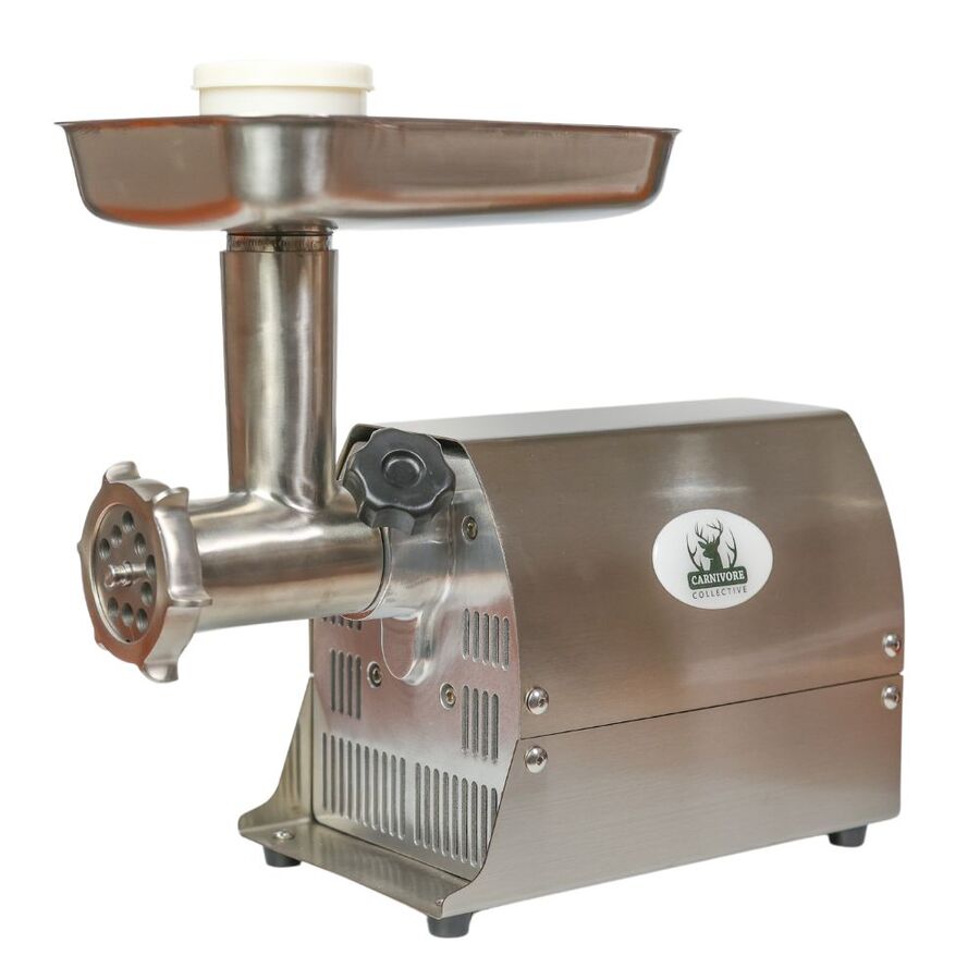 This Carnivore Collective #8 Stainless Steel Meat Mincer is the perfect kitchen appliance for any home butcher. This mincer is for your smaller animals and batches of mince. This mincer has a 0.40hp motor, non-slip feet, a #8 neck size for home use, stainless steel auger, and a stainless steel blade.