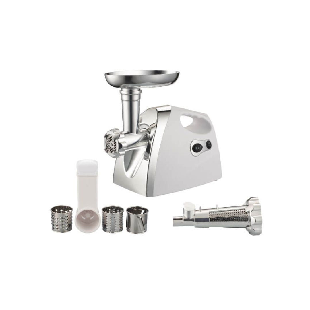 - Meat grinder with three stainless steel cutting discs (3, 5, 7 mm) and a four-blade cutting knife.