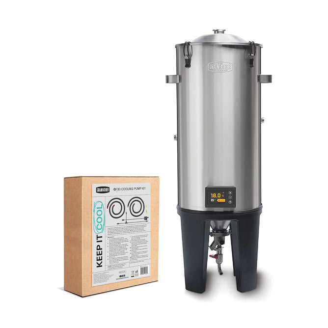 The Grainfather Conical Fermenter Basic Cooling Edition includes the Conical Fermenter Pro and Cooling Pump Kit. This allows you to control the heating of your unit and cooling via the Cooling Pump Kit, dump yeast, take samples and transfer your wort via our innovative dual function valve design. The 60-degree (Golden Angle) cone allows for optimum yeast/sediment drop down, giving you clearer beer.