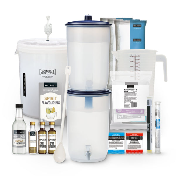 Ferment a pure sugar wash in just 7 days with Turbo ingredients, filter effortlessly with the Easy Filter System’s premium carbon technology, and flavour up to 7 L with a wide range of Top Shelf Select and Top Shelf flavourings. From classic to creative, explore flavours to suit every taste.
