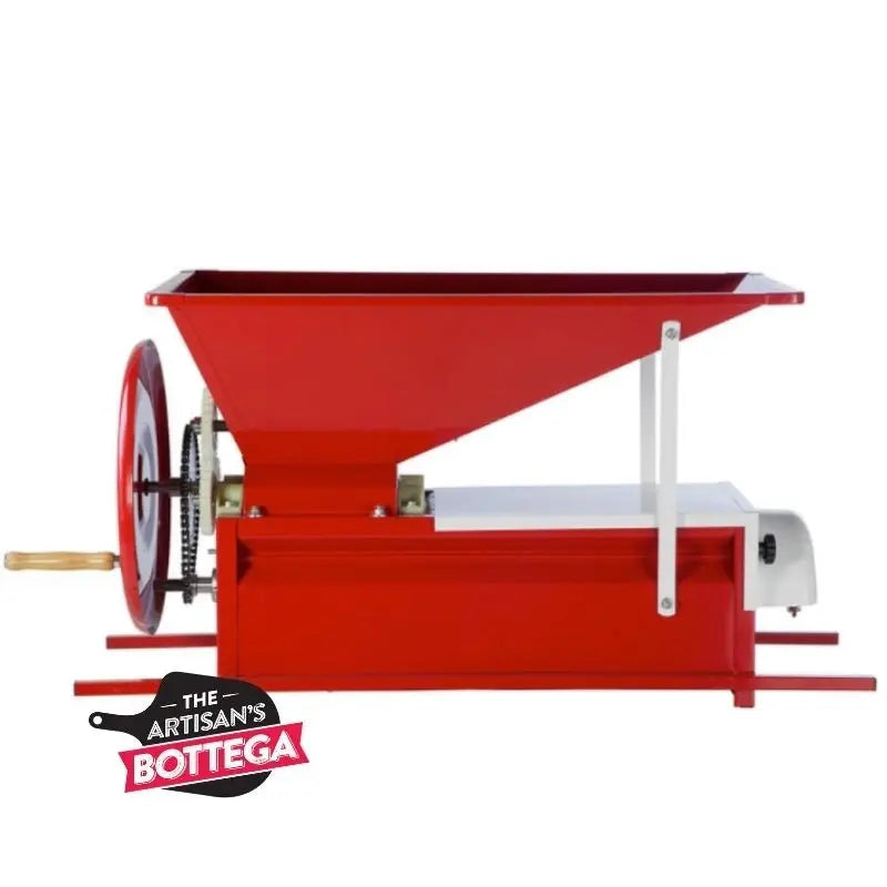 Crusher Destemmer BE Manual Baesso 40 lt Sloping Hopper comes with Nylon Rollers. The rollers can be adjusted for pressing and ensure the integrity from the passage of any solid parts. Imported from Italy.