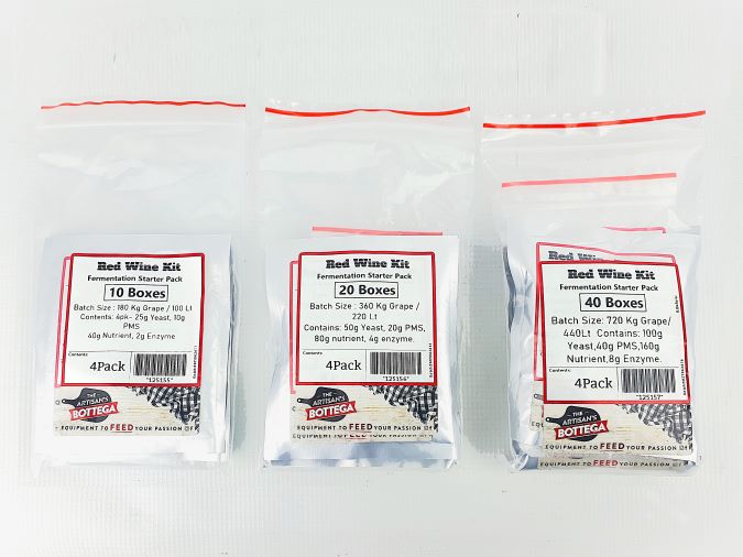 These wine kits are made up for 10, 20, or 40 boxes of grapes, either red or white.