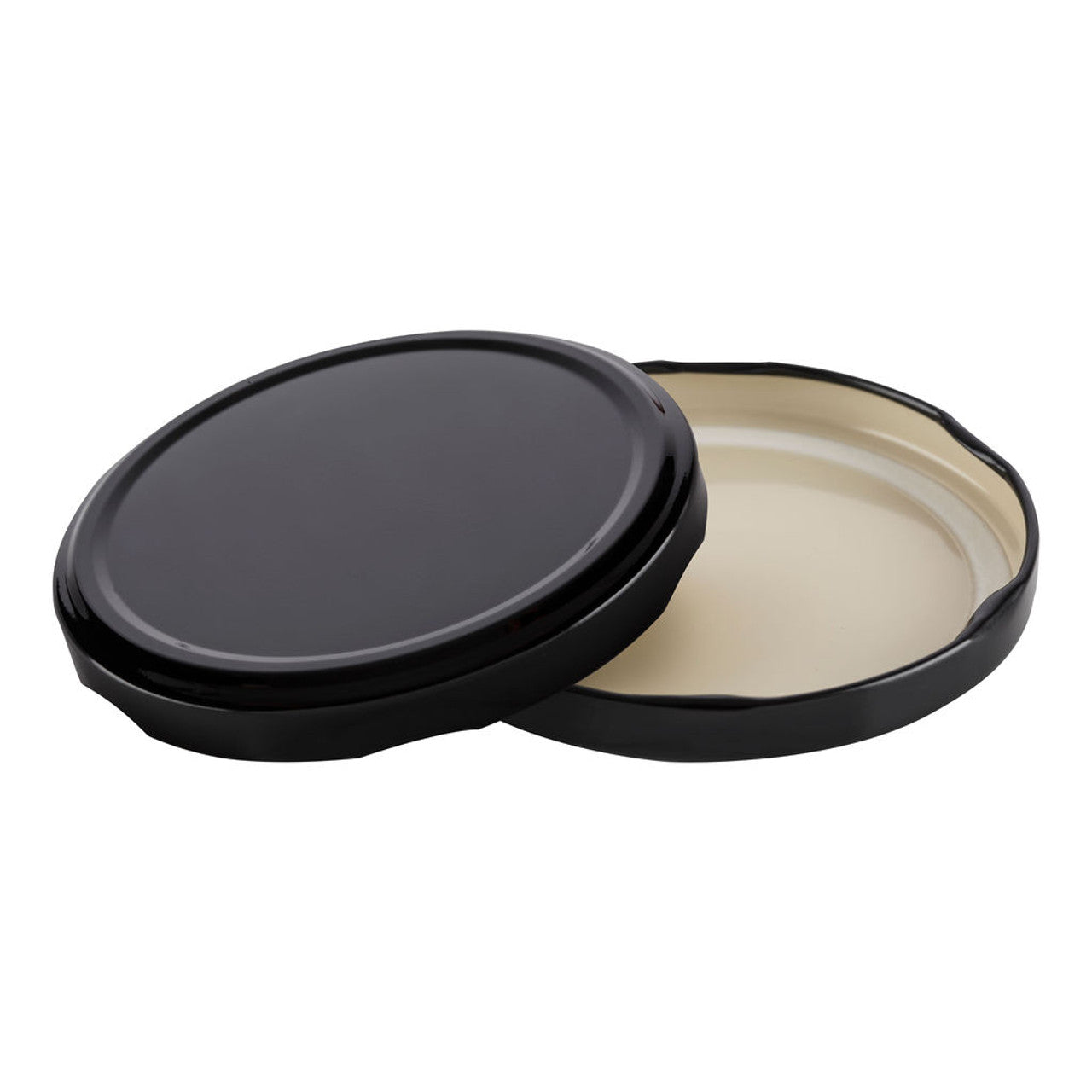 Black Metal Jar Lids to preserve and store your favourite food in glass jars with tight, classy lids. Perfect to store in a pantry, kitchen or lined up on a counter top. Choose the size from the dropdown as per your requirements. This traditional jar lid is durable, easy to clean and affordable.