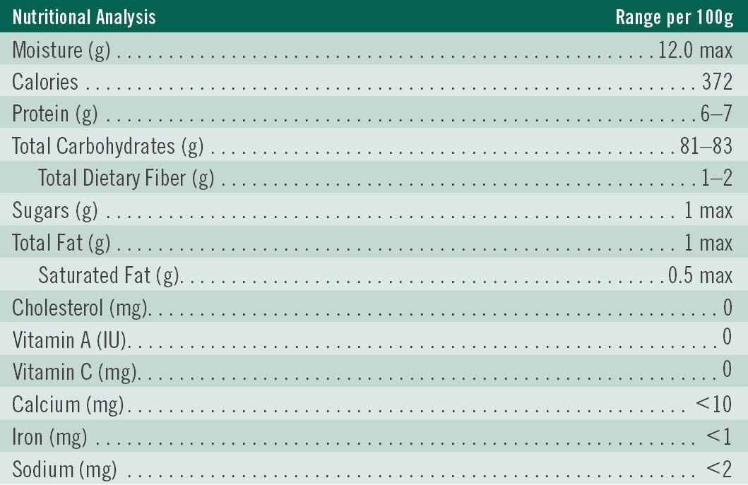 Replaces fats to get a creamy smooth texture. Dissolves in hot or cold liquids and gels as it cools