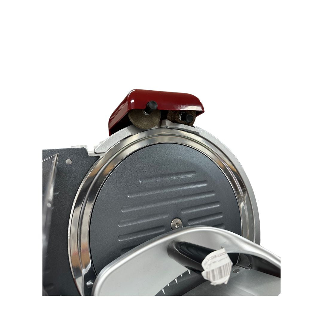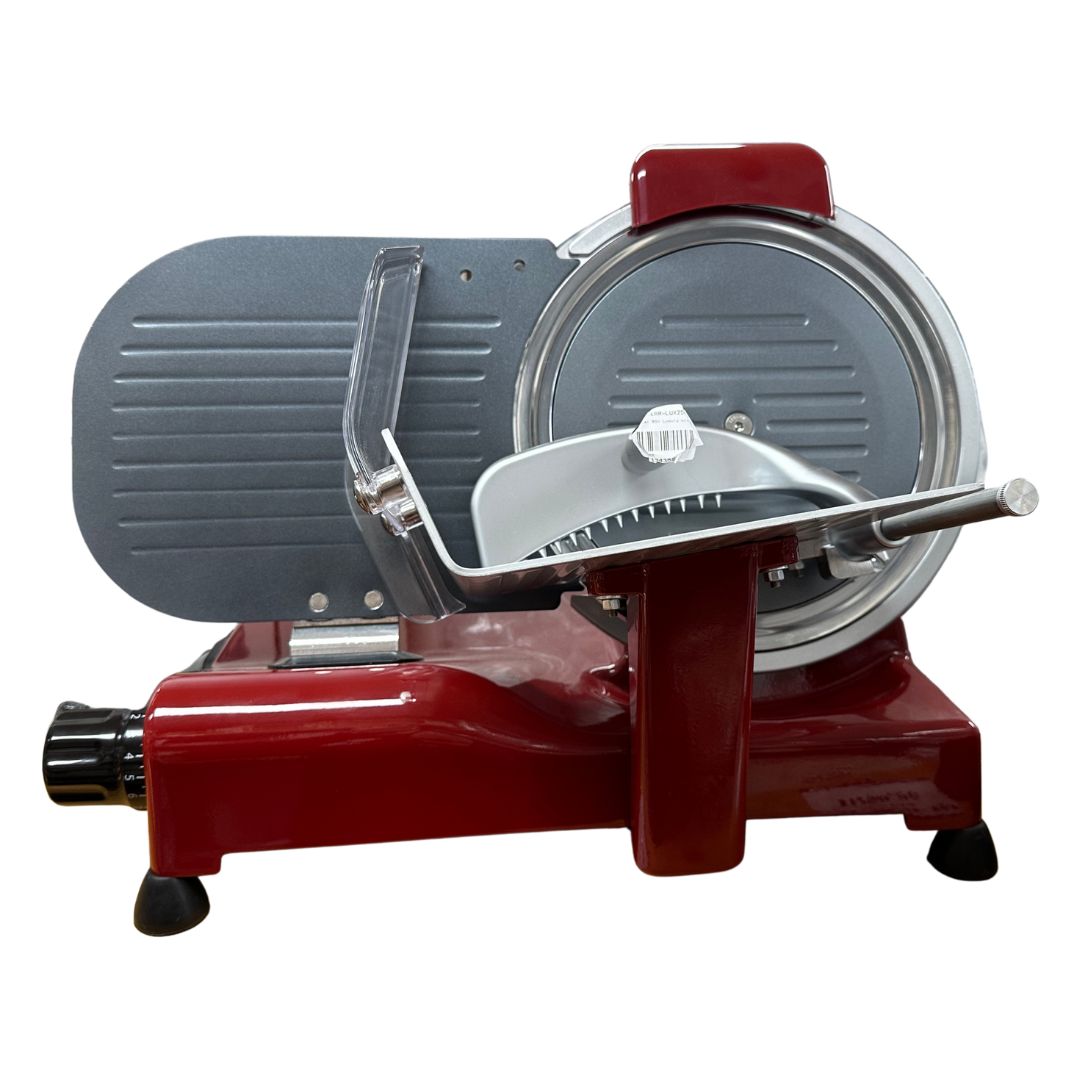 The LUXURY 250 Red and Teflon Edition is a stylish and efficient household meat slicer designed to slice cold cuts, cheeses, bread, fish, fruits, and vegetables. The Teflon board make it perfect for Cheese cutting. The innovative easy clean system allows the meat plate to be tilted for effortless cleaning, and the removable food holder arm with a finger protection guard is dishwasher-safe for added convenience. This slicer is a great addition to any kitchen, combining high performance with modern design.
