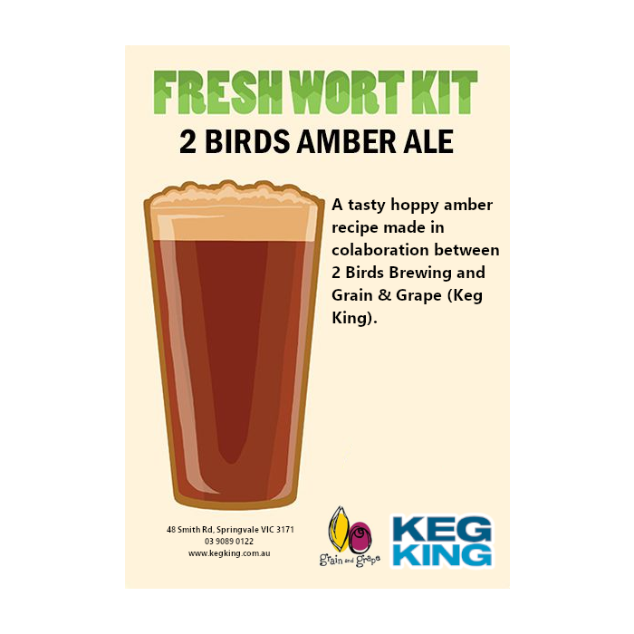A tasty hoppy amber recipe made in colaboration between 2 Birds Brewing and Grain & Grape.